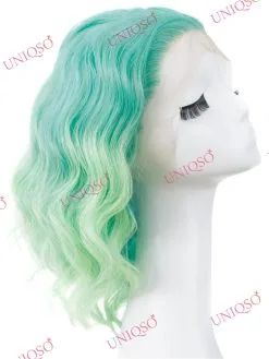 Celebrity Wig Premium Wig – Short Fantasy Green Lace Front Curly Wig